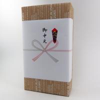 ふた付きワイン3本用化粧箱にお中元のし紙を添付したものです。