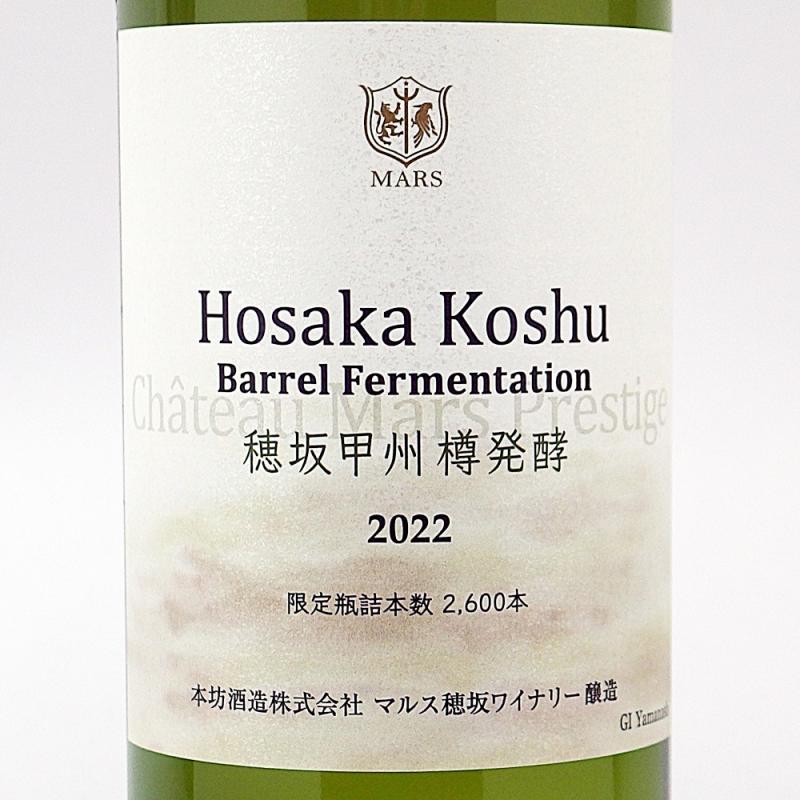 日照量日本一を誇る韮崎市穂坂地区収穫の甲州種のフリーラン果汁のみを樽発酵、樽貯蔵したプレステージワイン。