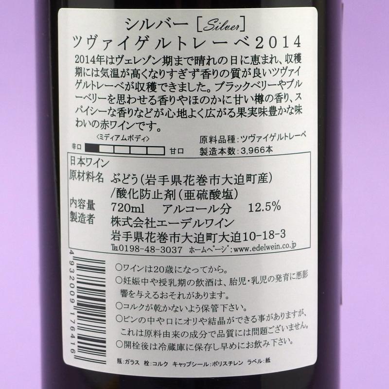 エーデルワイン・シルバー ツヴァイゲルトレーベ 2014 720ml 日本ワイン 岩手 花巻